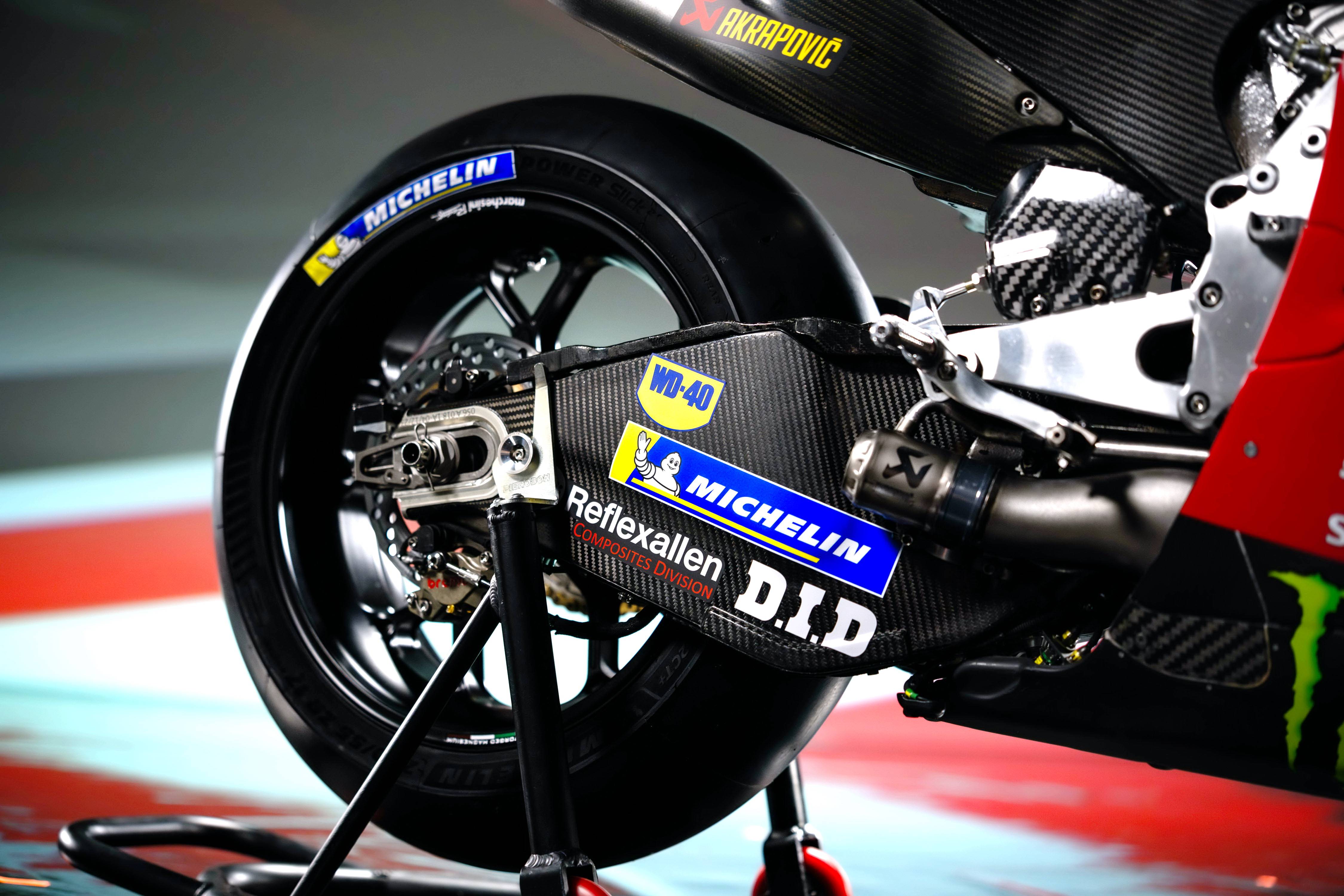參考官方公布的數(shù)據(jù),最新規(guī)格的 Desmosedici GP26 工廠賽車采用 V 型 90 度四氣缸、Desmodromic 控制每氣缸四氣閥的發(fā)動機,排氣量 1000 cc,配備了無縫變速齒輪箱,最大馬力輸出超過 280 匹;車體采用鋁合金制雙翼樑式的車架,經(jīng)過升級的空氣動力學(xué)組件,Ohlins 奧林斯的懸掛系統(tǒng)以及 Brembo 布雷博的制動系統(tǒng)。