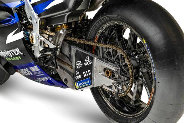 同步亮相的,還有 2026 初步規(guī)格的新型 MotoGP 工廠賽車 YZR-M1。這款新型賽車在去年曾以外卡首次亮相賽場,參考官方公布的資料,新的 YZR-M1 搭載一副水冷 V 型四氣缸、排氣量 1000 cc 的發(fā)動機,六檔的無縫變速齒輪箱,最大動力輸出超過 275 匹(202.2 kw)。車體采用一副鋁合金制雙翼樑式的、帶有多功能可調(diào)轉向幾何系統(tǒng)的 Deltabox 車架,鋁合金制的后搖臂是標準裝備、可換裝碳纖維制的后搖臂。