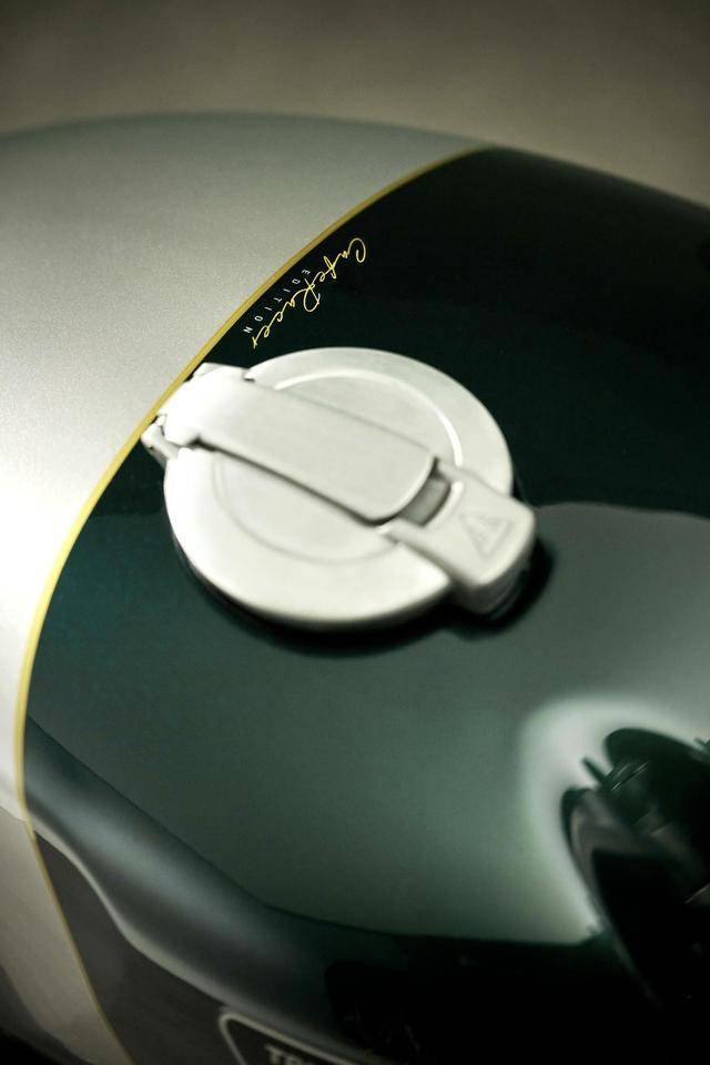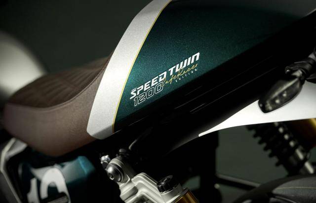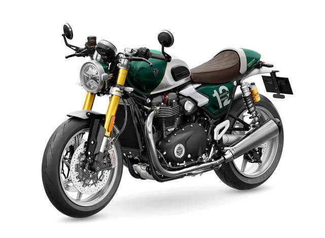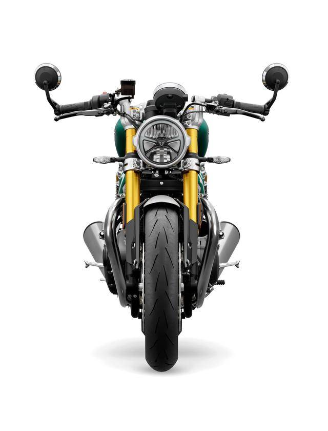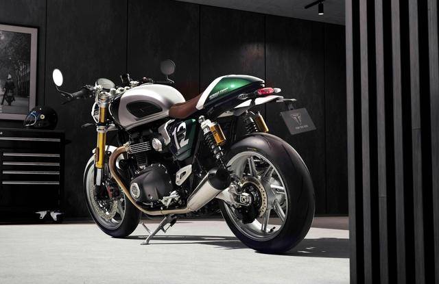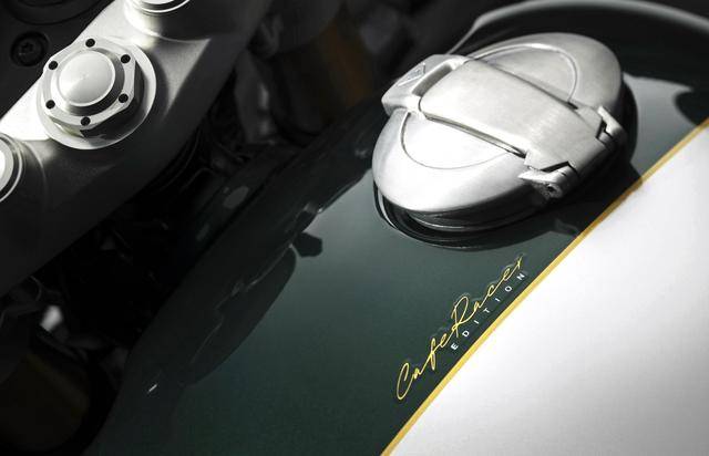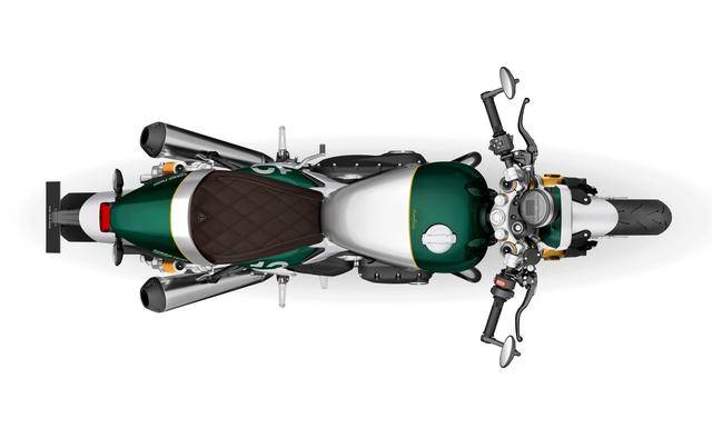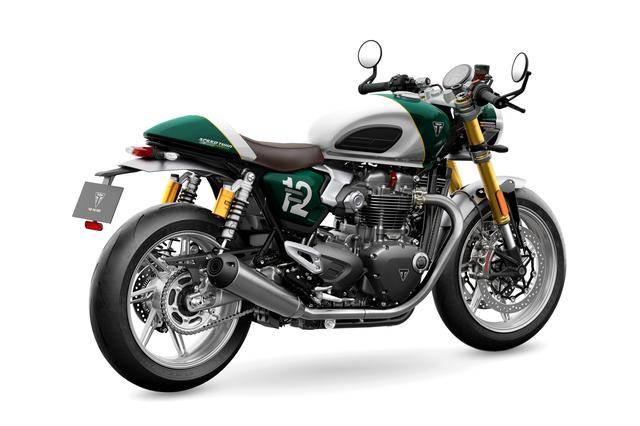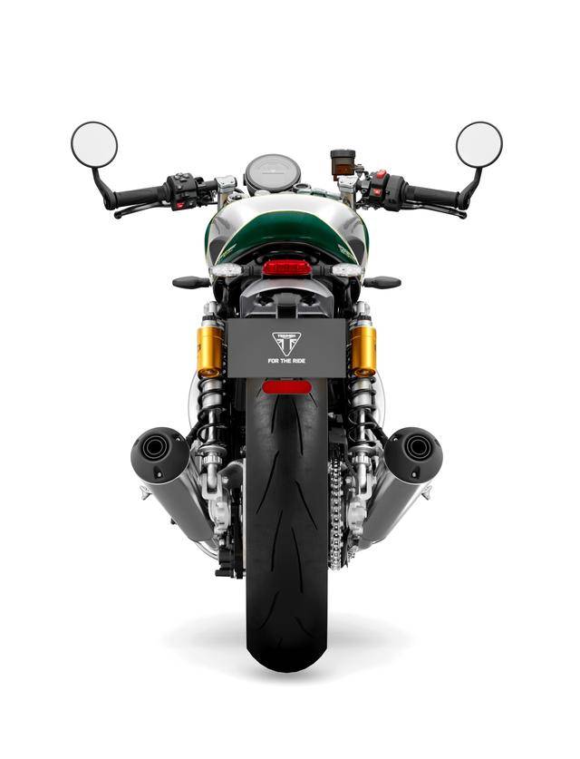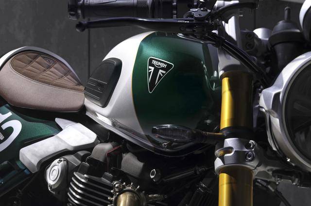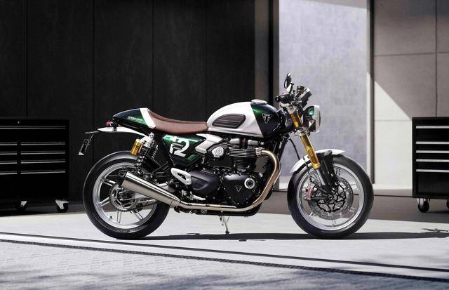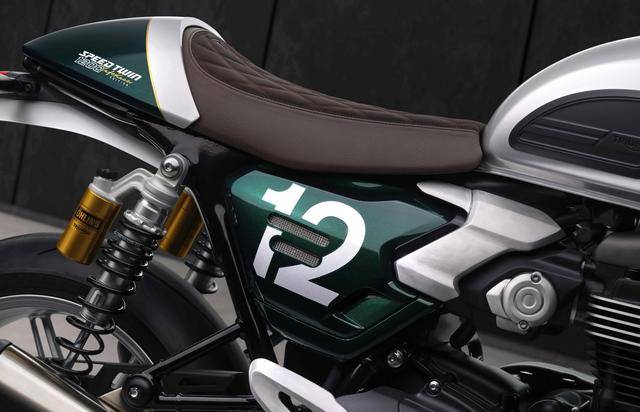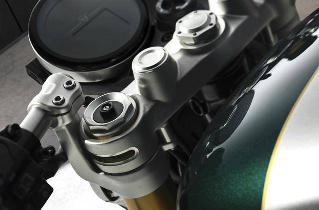 6、換裝了更有質感的鞍座以及位于車把兩端的后視鏡,油箱兩側的大腿位置處也標配了防磨墊(RS 版沒有此標準裝備);采用了一個獨特的、凱旋在上世紀時賽車傳統風格的競賽綠(Competition Green)與鋁銀色(AluminiumSilver)相結合的車身圖案;標準軸距保持在 1414 mm、鞍座高度仍為 810 mm,全車整備重量 217 公斤(RS 版為 216 公斤)。