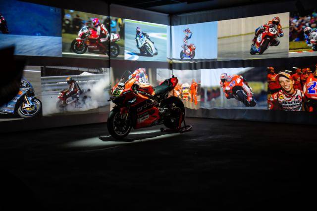 * 其他的展車,包括了為杜卡迪奪得首個 MotoGP 級別世界冠軍的 2007 Desmosedici GP07,第一次由意大利車手(Francesco Bagnaia 巴納亞)駕駛意大利制造商的賽車、奪得 MotoGP 級別世界冠軍的 2022 Desmosedici GP22;在 WorldSBK 連續(xù)四年(2022 - 2025 賽季)拿到制造商年度總冠軍的 Panigale V4 R,杜卡迪的第一輛 MotoE 電動摩托車 V21L 等;