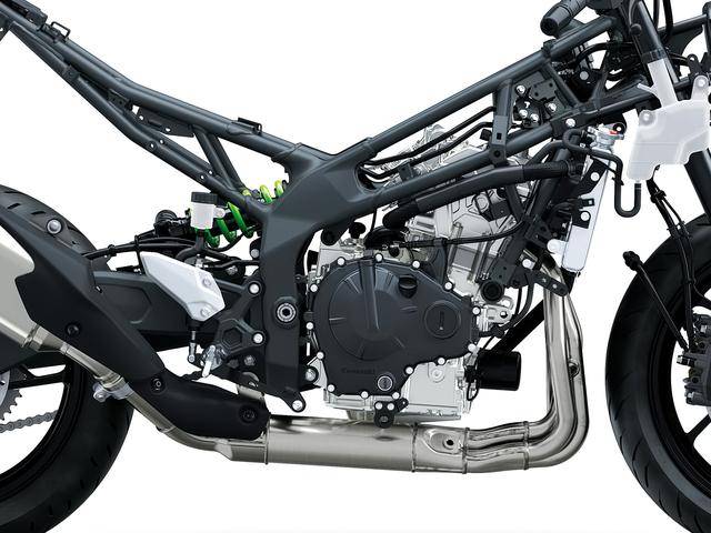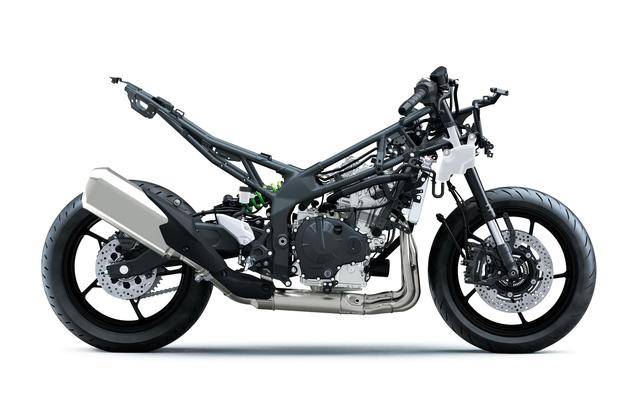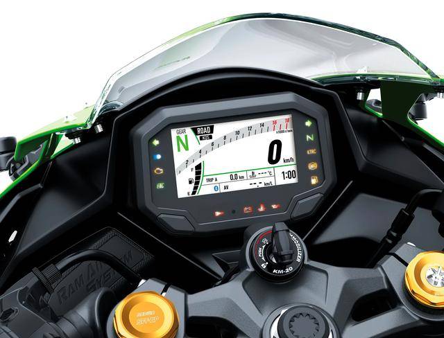 車體采用一副鋼管式的車架、左右不對稱式造型設(shè)計的后搖臂,懸掛系統(tǒng)采用了叉芯口徑為 37 mm 的 SFF-BP 倒立式前叉,接近于水平安裝的、多連桿結(jié)構(gòu)的后減震;外觀上、有著一個 Ninja家族風(fēng)格的造型,車頭前部整流罩兩側(cè)邊殼帶有 Ram-Air 進(jìn)氣口;前雙碟后單碟的制動系統(tǒng),全 LED 的燈光系統(tǒng),4.3 英寸的 LCD 數(shù)字式儀表板等。電子輔助控制系統(tǒng)方面,標(biāo)配了電控油門,集成了 KTRC 牽引力控制系統(tǒng)、四個模式的動力輸出選擇(Sport 運動、Road 常規(guī)公路、Rain 雨天、Rider 騎士自定義)、ABS。SE 版和 RR 版并標(biāo)配了 KQS 雙向快速換檔系統(tǒng)。
