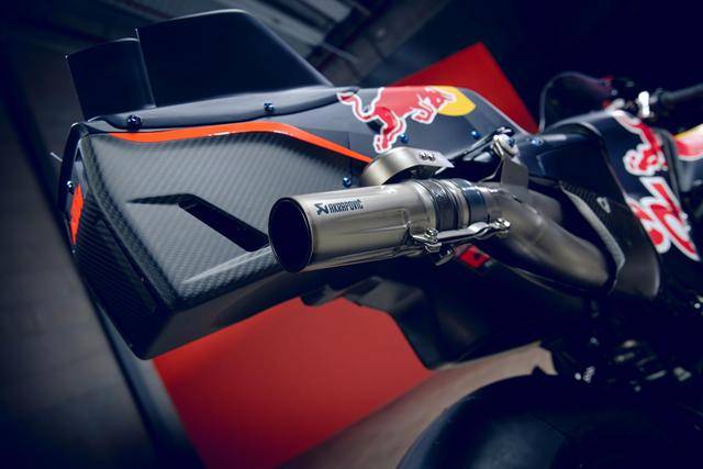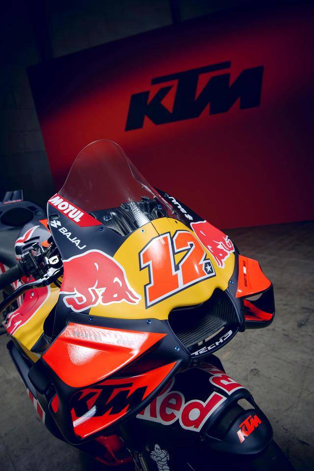 車隊(duì)使用的 KTM RC16 賽車,搭載一副 V 型四氣缸、DOHC每汽缸四汽閥的發(fā)動(dòng)機(jī),與 Akrapovic阿克拉波維奇共同開發(fā)的、帶電子控制閥門的排氣系統(tǒng);車身采用一副混合結(jié)構(gòu)的車架,WP 的懸掛系統(tǒng),Brembo布雷博的制動(dòng)系統(tǒng)等。
