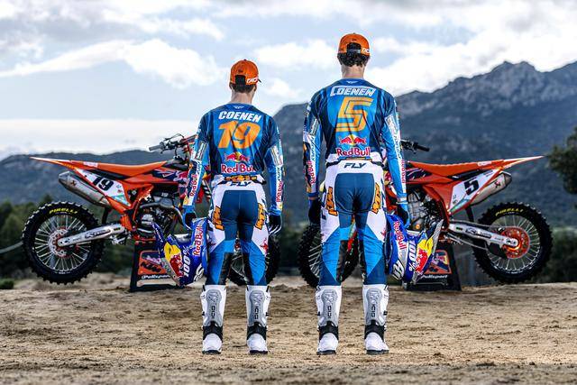 另一個(gè)小組(Red Bull KTM Factory Racing De Carli IT)的經(jīng)理兼教練卡利(Davide De Carli),旗下的兩位車(chē)手是來(lái)自比利時(shí)的 19 歲雙胞胎兄弟:MXGP 級(jí)別、駕駛 5 號(hào)車(chē)的 L. 科寧(Lucas Coenen),他是 2024 賽季 MX2 級(jí)別的年度總亞軍,去年首次升級(jí)到 MXGP,并以出色表現(xiàn)、初次登場(chǎng)就奪得了年度總亞軍,成為了去年傷兵滿營(yíng)的 KTM 之奇兵;參加 MX2 級(jí)別比賽的是弟弟、駕駛 19 號(hào)車(chē)的 S. 科寧(Sacha Coenen),去年在這一級(jí)別奪得了年度第四名。