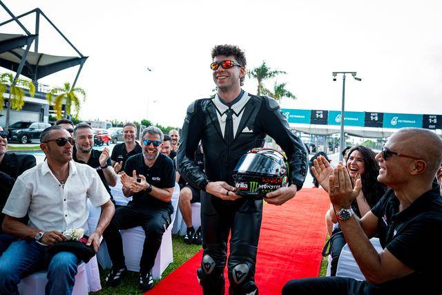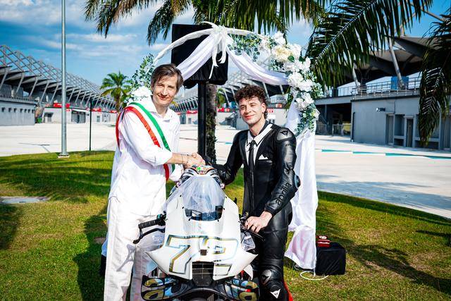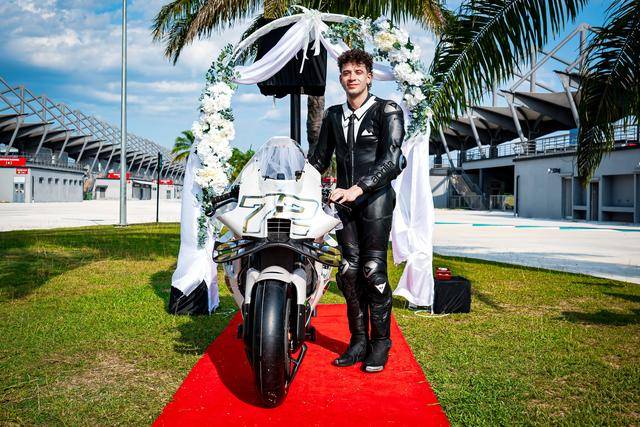 作為此前承諾(若貝澤奇能夠拿到三個(gè)或以上的分站冠軍)的一部分,阿普利亞向貝澤奇贈(zèng)送了一輛 RS-GP 賽車。為此雙方舉行了一場(chǎng) “ 婚禮 ” 式的交付贈(zèng)送儀式,貝澤奇將這輛賽車稱為 RS-GP Albarosa,并將其當(dāng)成 “ 伴侶 ” 而發(fā)表了一份 “ 互愛(ài) ” 的宣言。