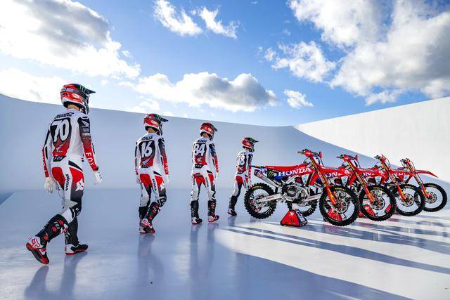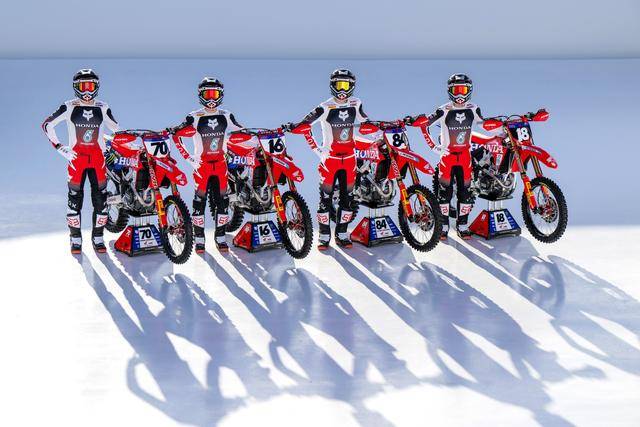 HRC 工廠車隊(duì)以新的、四位車手的組合出戰(zhàn) 2026 賽季。在最高級(jí)別的 MXGP(使用四沖程單氣缸、排氣量 450 cc 以下發(fā)動(dòng)機(jī)的賽車),HRC 車隊(duì)有三位車手:駕駛 16 號(hào)車的法國(guó)車手維亞里(Tom Vialle),駕駛 70 號(hào)車的西班牙車手費(fèi)南德茲(Ruben Fernandez),以及駕駛 84 號(hào)車的荷蘭車手賀靈斯(Jeffrey Herlings)。在這一級(jí)別里,HRC 工廠車隊(duì)采用的是 CRF450RW 工廠賽車。