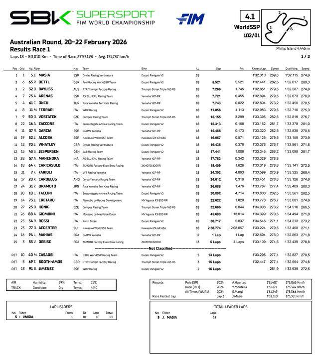 FIM WorldSBK 超級跑車世界錦標(biāo)賽(FIM Superbike World Championship)2026 賽季的揭幕戰(zhàn),二月 20 - 22 日在澳大利亞的菲利普島(Phillip Island)賽車場舉行。