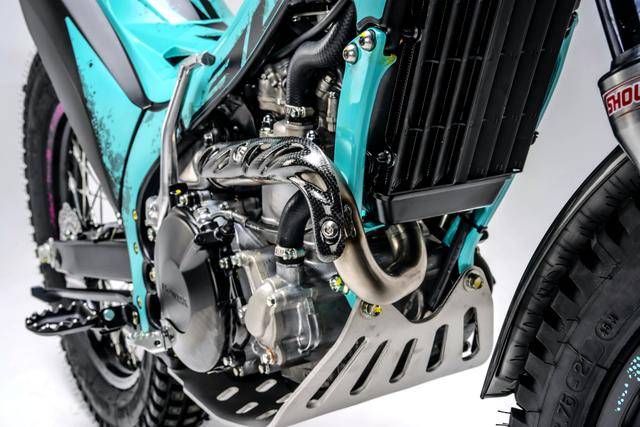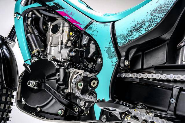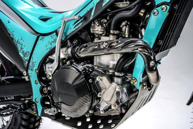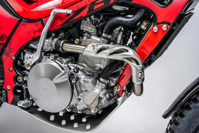 蒙提薩 Montesa Cota 系列有兩個(gè)不同的車型:入門級的 Cota 4RT 260R 和 Cota 4RT 301RR。其中的 Cota 4RT 260R 搭載一副水冷四沖程單氣缸、SOHC 四氣閥的發(fā)動(dòng)機(jī),缸徑、行程為 78 mm x 54.2 mm,排氣量 258.9 cc,節(jié)氣閥口徑為 28 mm 的 PGM-FI 電子燃油噴注系統(tǒng)、五檔的變速齒輪箱,前 10T、后 41T 的傳動(dòng)齒輪。車體采用一副鋁合金制的車架,叉芯口徑為 39 mm 的 Showa 正立式前叉、Pro-Link 多連桿聯(lián)接的后減震,Braktec 的剎車卡鉗和前上泵(手泵)、Galfer 的前后剎車碟,鋁制的油箱,前 21、后 18 英寸直徑的輕量化鋁制輪轂,全車整備重量為 172 磅(約 78 公斤)。