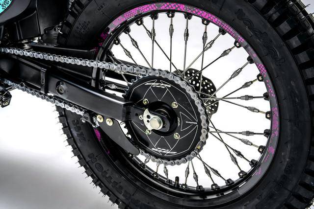 車體方面,采用一副鋁合金制的雙翼樑式車架,叉芯口徑為 39 mm、但具有更長行程的 Showa 正立式前叉,Pro-Link 多連桿聯(lián)接的單筒式后減震,鋁制的油箱,直徑為前 21、后 18 英寸的輕量化鋁制輪轂,全車整備重量為 169 磅(約 76.7 公斤)。