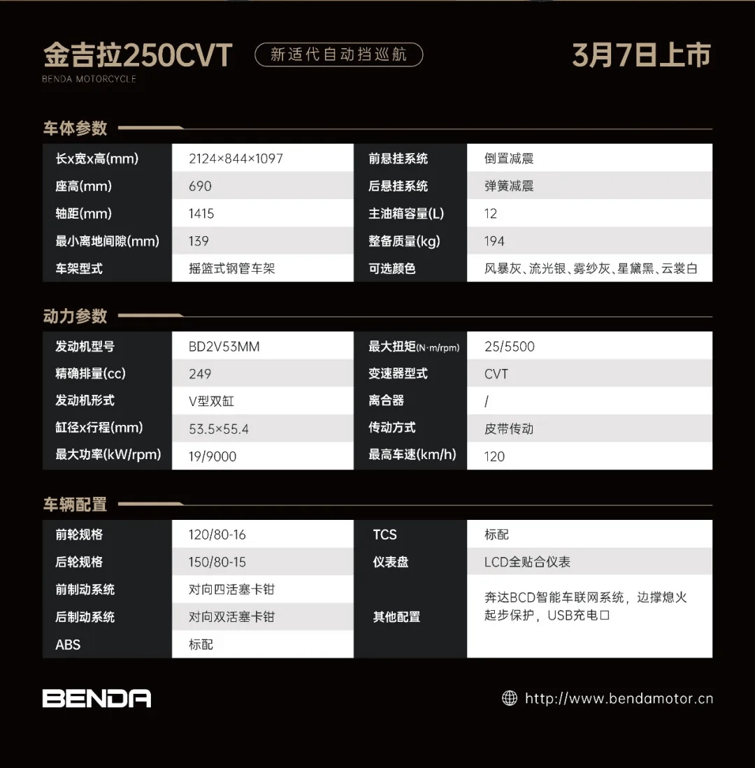 奔達金吉拉 250CVT 即將上市,解鎖復(fù)古巡航新姿勢