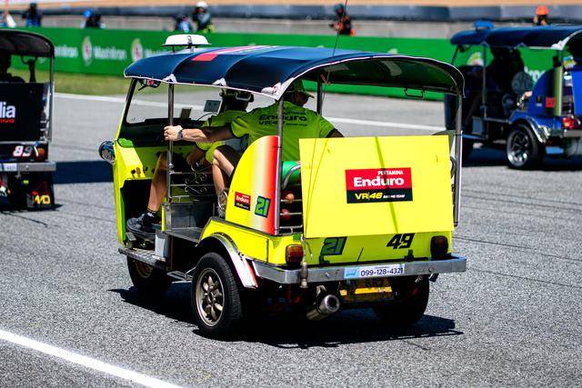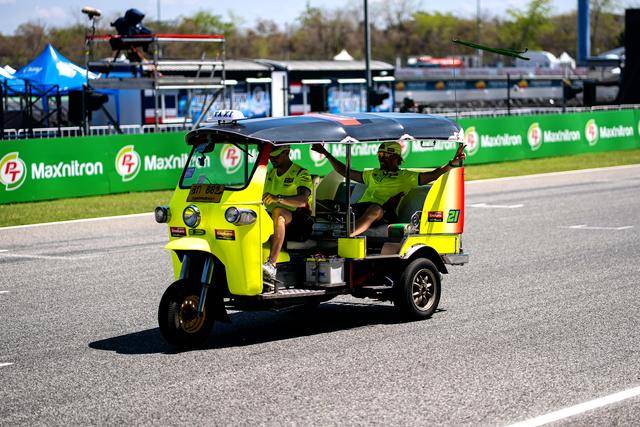 作為泰國(guó)當(dāng)?shù)氐臉?biāo)志性摩托文化之一,Tuk-Tuk 三輪嘟嘟車(chē)堪稱(chēng)是當(dāng)?shù)亟煌ɡ锏囊淮筇厣?。在周日(三?1 日)的正賽開(kāi)始前,作為開(kāi)幕環(huán)節(jié)之一,MotoGP 級(jí)別的車(chē)手們,來(lái)了一場(chǎng)別開(kāi)生面的嘟嘟車(chē)挑戰(zhàn)賽(Tuk-Tuk Challenge)。