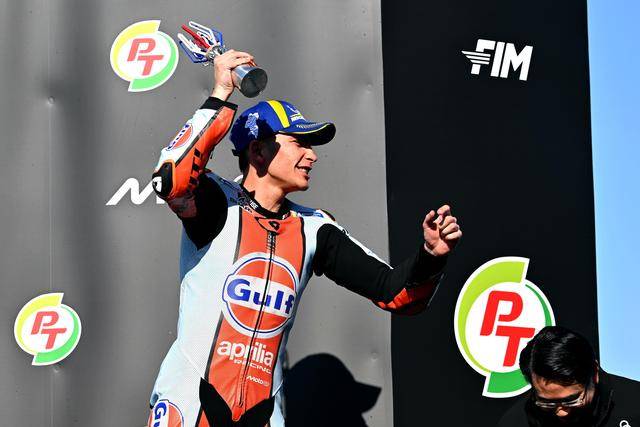 MotoGP 級(jí)別,Aprilia 阿普利亞在這場(chǎng)新賽季的首戰(zhàn)中、拿下了 WGP 最高級(jí)別里面的歷史性佳績(jī):駕駛 72 號(hào)車的意大利車手貝澤奇(Marco Bezzecchi)在 PR 自由練習(xí)時(shí)就跑出了 1 分 28.526 秒的破紀(jì)錄圈速(舊紀(jì)錄是 1 分 30.637 秒),并拿到了排頭位發(fā)車;隨后開(kāi)始的沖刺賽,盡管貝澤奇摔車退賽,但阿普利亞陣營(yíng),25 號(hào)車的西班牙車手費(fèi)南德茲(Raul Fernandez)奪得了第三,駕駛 79 號(hào)車的隊(duì)友、日本車手小椋藍(lán)(Ai Ogura)奪得了第四,89 號(hào)車的西班牙車手馬?。↗orge Martin)拿到了第五,三位車手均進(jìn)入積分區(qū)。