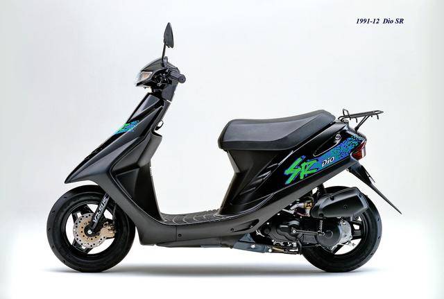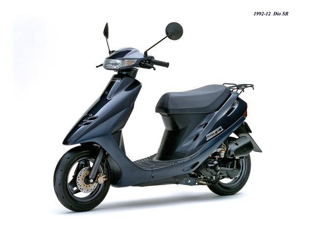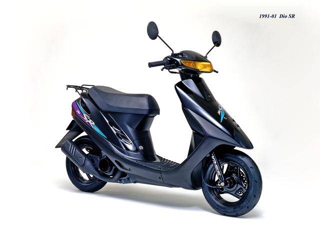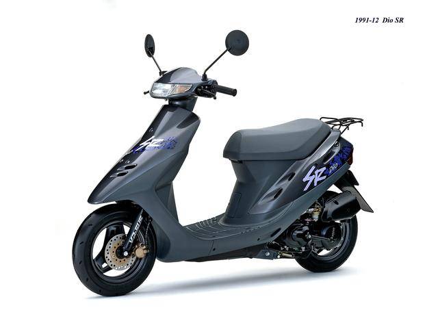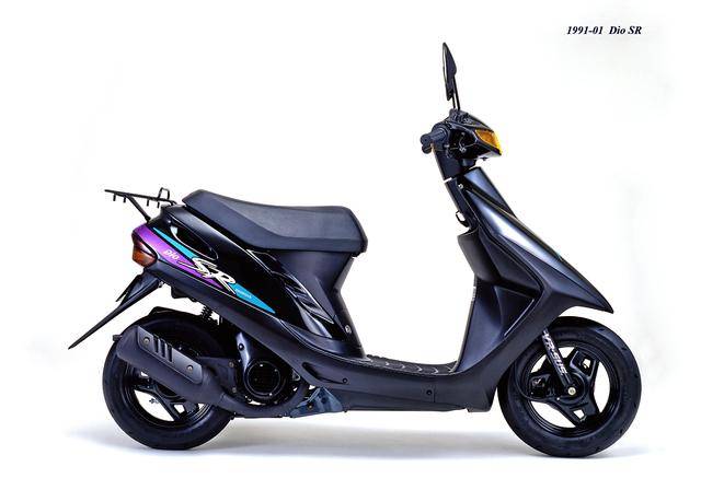 1991 年一月,廠方推出了基于第二代 Dio 的 Dio SR(工廠編號 AF28)。主要規(guī)格上,SR 版與標(biāo)準(zhǔn)款大致相同,仍是搭載 AF18E 的發(fā)動機(jī),兩個版本之間的標(biāo)志性差異,是 SR 版換裝了碟式的前制動系統(tǒng)(標(biāo)準(zhǔn)款采用前鼓式的制動系統(tǒng))。此外,早期的第二代 SR 版采用了類似當(dāng)時汽車流行的黃色前大燈殼,而后期的第二代 SR 版則換回了常規(guī)的前大燈殼。