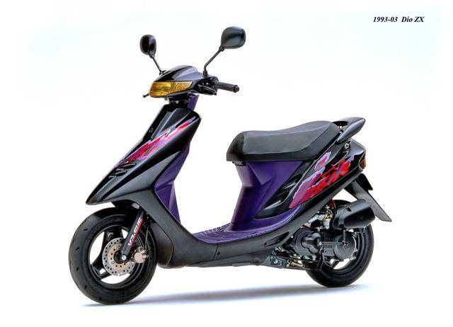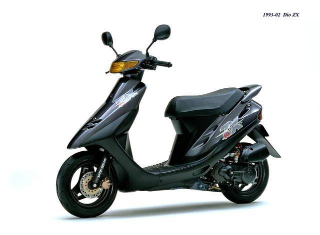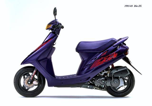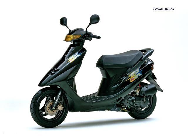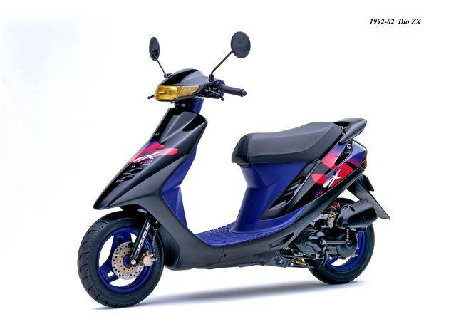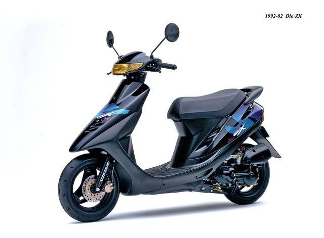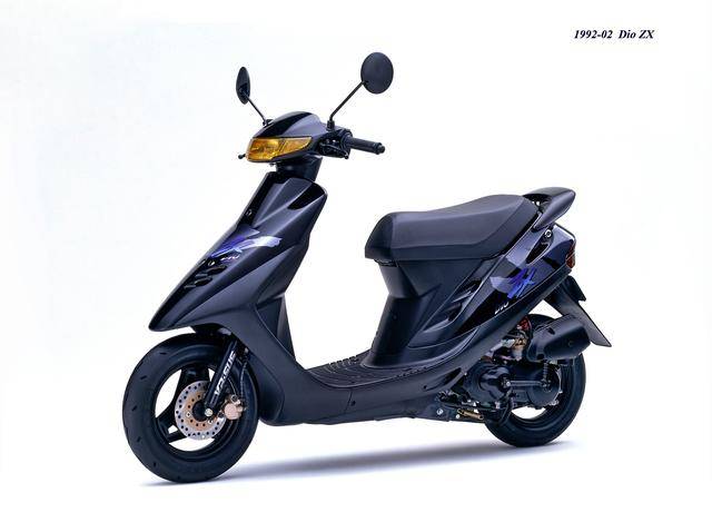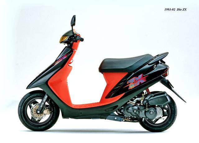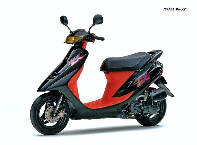 1992 年二月,基于第二代 Dio 的 Dio ZX(工廠編號與 SR 版同為 AF28)。對于 Dio 系列來說,ZX 版都相當(dāng)于是換代前的中期改進(jìn)型,新的 Dio ZX 采用一副編號仍為 AF18E、但內(nèi)部經(jīng)過大幅改進(jìn)的風(fēng)冷兩沖程發(fā)動機(jī),最大馬力輸出提高至 7 匹/7000 rpm。新機(jī)器除了汽缸和化油器經(jīng)過升級之外,無段變速系統(tǒng)也經(jīng)過修改、采用了寬變速比的新設(shè)計,此外、消聲器也采用了新的設(shè)計。