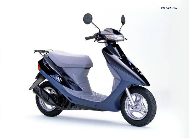 1988 年一月,Honda 推出了第一輛的 Dio(本土版的工廠編號為 AF18),到 1990 年的十二月中、發(fā)布第二代之前,廠方稱,他們這款主要面向年輕人的小型踏板,在不到三年的短短時間里就累計生產(chǎn)了超過 77 萬輛,市場上大獲好評。