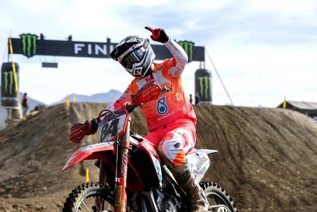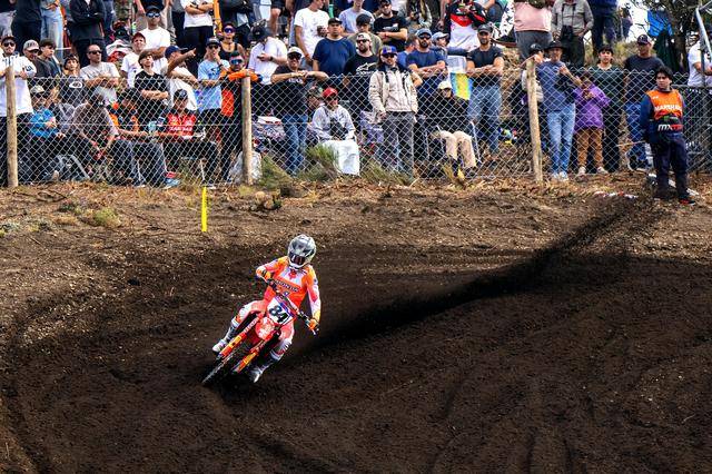 MXGP 級(jí)別,有著五屆世界冠軍頭銜(2012、2013、2016 的 MX2 級(jí)別,2018、2021 年的 MXGP 級(jí)別)、駕駛著 84 號(hào)車的荷蘭車手賀靈斯(Jeffrey Herlings),自去年賽季末段傷愈復(fù)出以來、一直表現(xiàn)強(qiáng)勢(shì),今年開始轉(zhuǎn)到了 HRC 之后、其強(qiáng)勁的表現(xiàn)延續(xù)到這場(chǎng)新賽季的揭幕戰(zhàn)。兩節(jié)的正賽里,賀靈斯都順利奪冠,為 HRC 迎來自去年四月以來的新勝利。