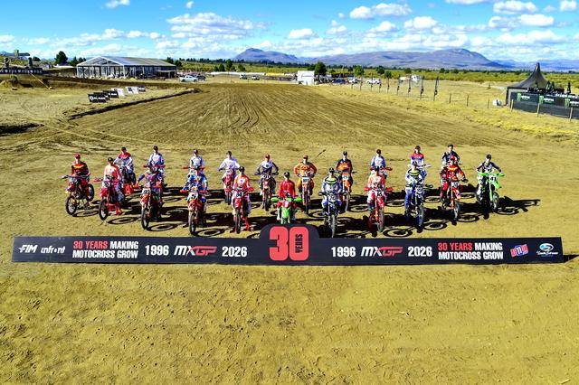 從最初的行動(dòng)集團(tuán)(Action Group)、Youthstream 到現(xiàn)在的前方賽車(Infront Moto Racing),自 1996 年開始,F(xiàn)IM 越野世界錦標(biāo)賽的推廣專營(yíng)權(quán)公司就一直掌握在盧昂戈(Luongo)家族手中,到 2026 賽季、進(jìn)入三十周年。作為慶祝環(huán)節(jié)之一,賽前舉行了車手的大合照。賽會(huì)稱,三十年過去了,但故事還在繼續(xù),且(影響力)比以往任何時(shí)候都更強(qiáng)大,他們?nèi)栽跁鴮懺揭百愜嚨奈磥怼?/p>