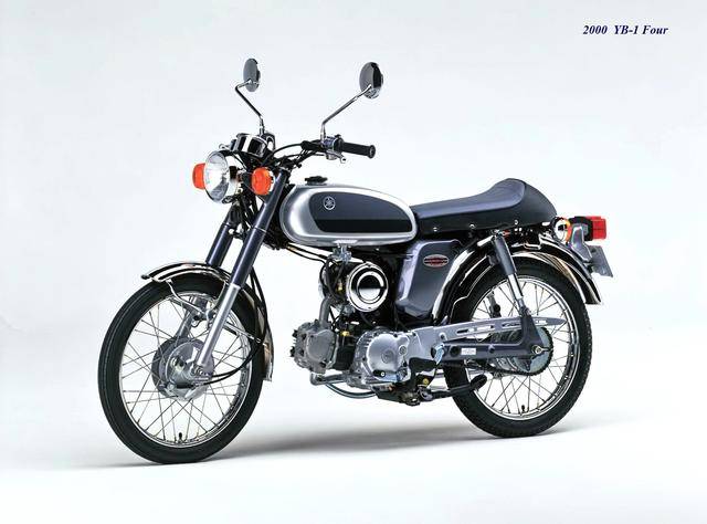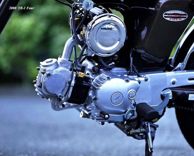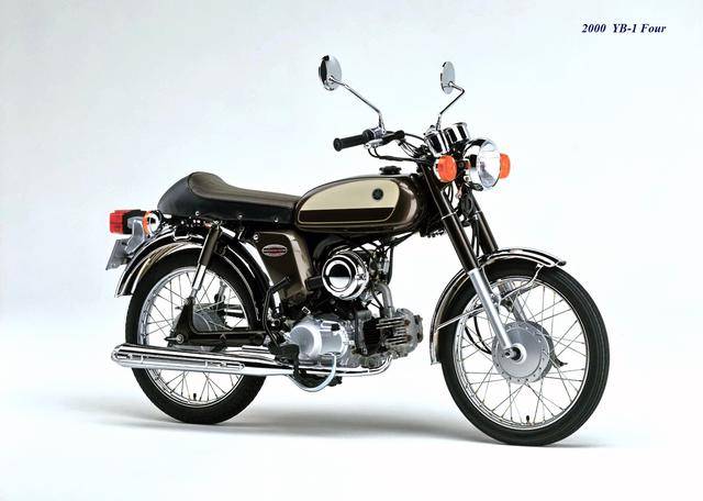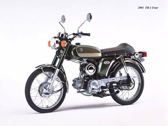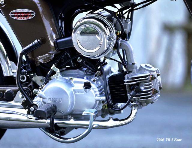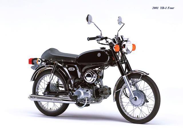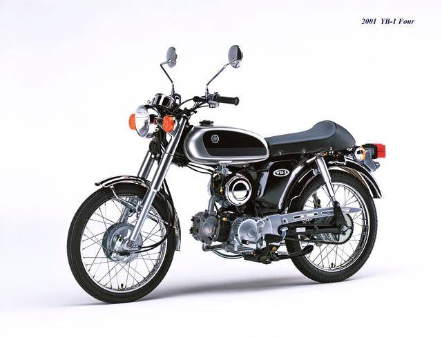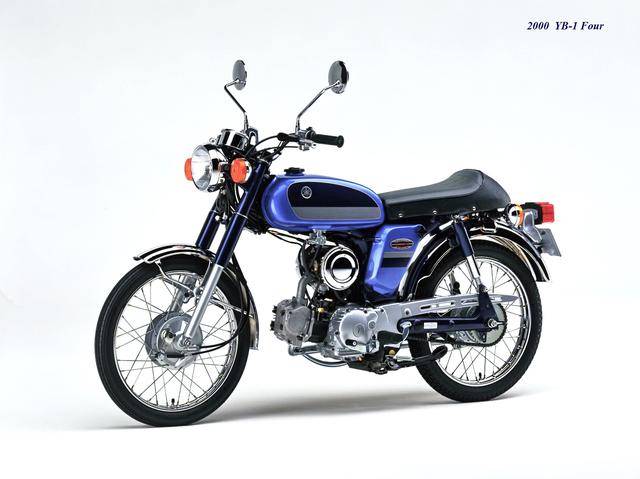 到 2000 年三月,YB-1Four(工廠編號 BA-UA05J)正式發(fā)布,F(xiàn)our 意為 “ 四 ”,顧名思義,新車換裝了一副風(fēng)冷四沖程臥式單氣缸、SOHC 兩氣閥的發(fā)動機(jī),缸徑、行程為 36 mm x 48.6 mm,排氣量 49 cc,最大動力輸出 4.1 匹。外觀上,新的 YB-1Four 繼承了 YB-1 的風(fēng)格,容量為 7.2 公升的油箱(同期的競爭對手 Honda Benly 50S,油箱容量為 6 公升)、17 英寸直徑的前后車輪等,主要的機(jī)械規(guī)格基本不變。