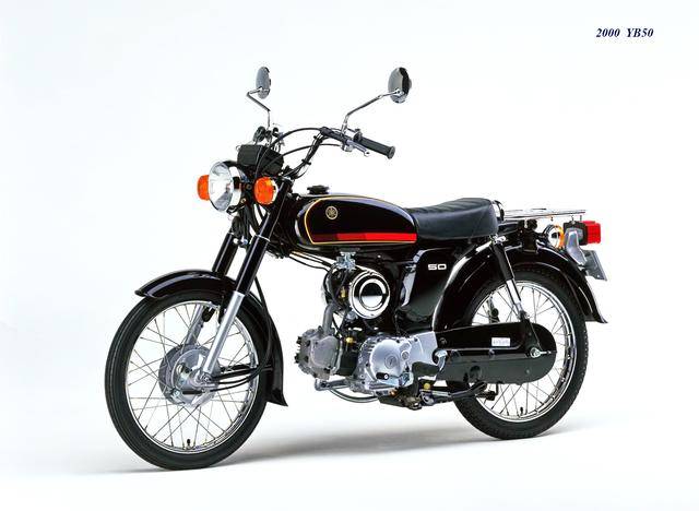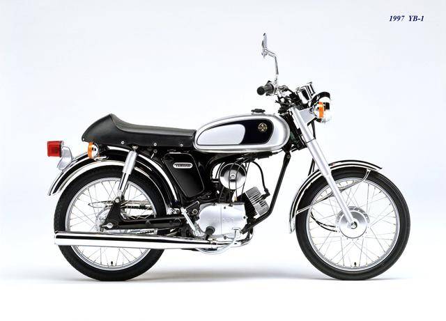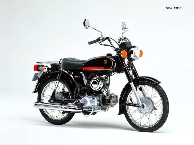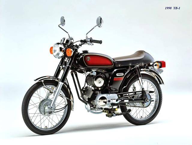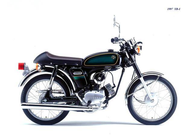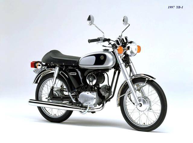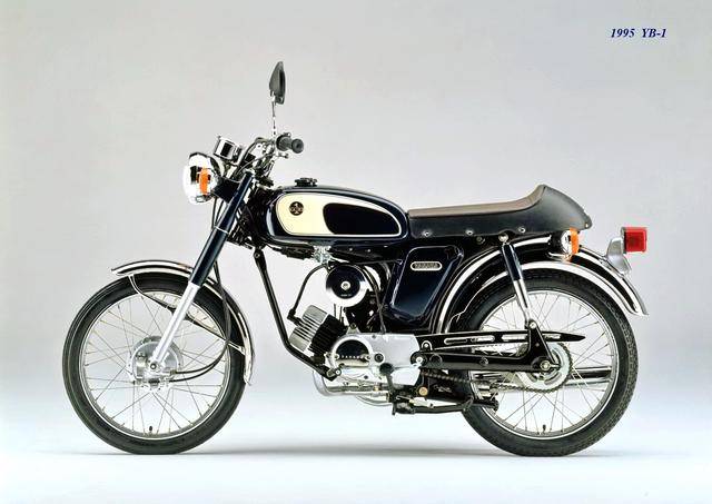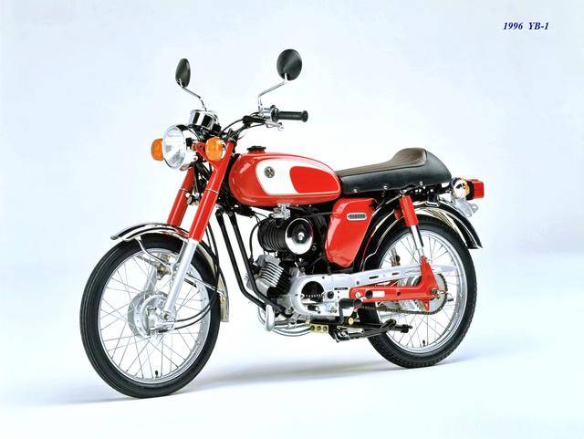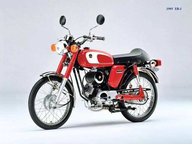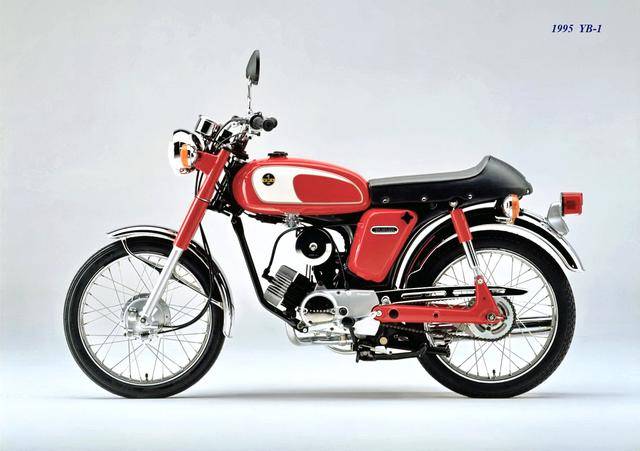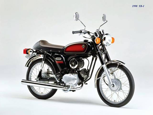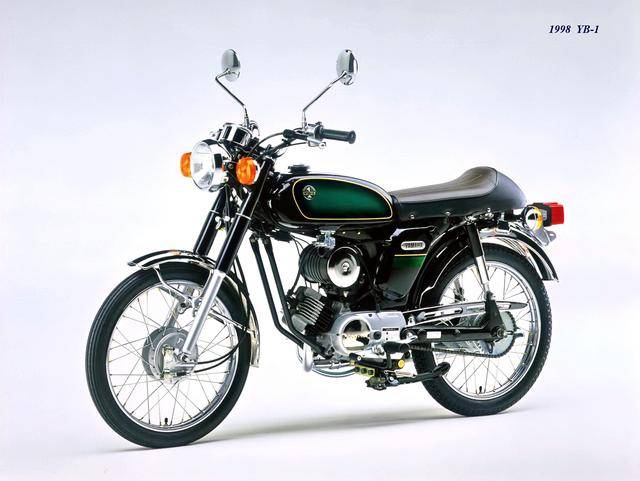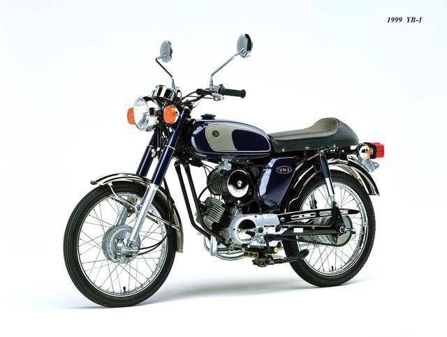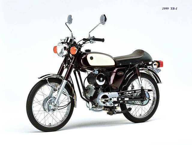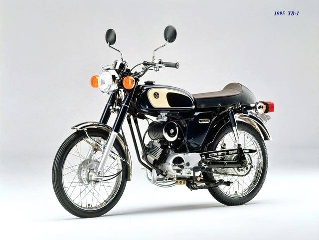 1995 年,Yamaha 首次推出了 YB-1(工廠編號 A-F6B)。新車以現(xiàn)有的 YB50 平臺進(jìn)行了復(fù)古化外觀風(fēng)格而成,搭載一副風(fēng)冷兩沖程臥式單氣缸的發(fā)動機(jī),缸徑、行程為 40 mm x 39.7 mm(與 1973 YB50 相同),排氣量 49 cc,循環(huán)四檔的變速齒輪箱,最大動力輸出 4.6 匹。車體采用了一個 Cafe Racer 咖啡賽車手的整體造型,直徑為 17 英寸的前后車輪。
