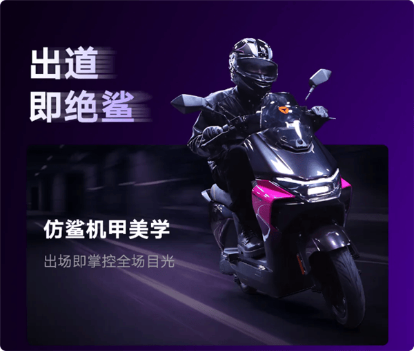 外觀采用仿鯊機甲設計,搭配42000cd高亮駭浪大燈,照明范圍廣且燈效可自定義,辨識度拉滿。