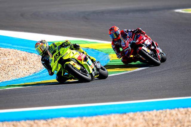 MotoGP 級(jí)別,賽前的 Q2 排位,駕駛 49 號(hào)車的意大利吉南托里奧(Fabio Di Giannantonio)拿到了排頭位發(fā)車,另一位意大利車手、狀態(tài)大好的貝澤奇(Marco Bezzecchi)排在第二,應(yīng)屆世界冠軍(車手年度積分總冠軍)、93 號(hào)車的西班牙車手馬昆斯(Marc Marquez)排在發(fā)車位置的第三。