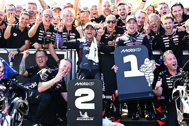 周日(三月 22 日)舉行的正賽,原定 31 圈的比賽、因?yàn)楦鞣N的狀況而被縮減到 23 圈。延續(xù)著此前的強(qiáng)勢,貝澤奇在取得領(lǐng)先位置之后、就以快速的節(jié)奏拉開與后車的距離,上半段比賽結(jié)束時(shí),他與后車的距離接近 2 秒;后半段的比賽里,貝澤奇都沒有放松,且把領(lǐng)先優(yōu)勢進(jìn)一步擴(kuò)大。最終,他順利奪得了 MotoGP 正賽的冠軍,取得了新賽季開賽以來的兩連勝。