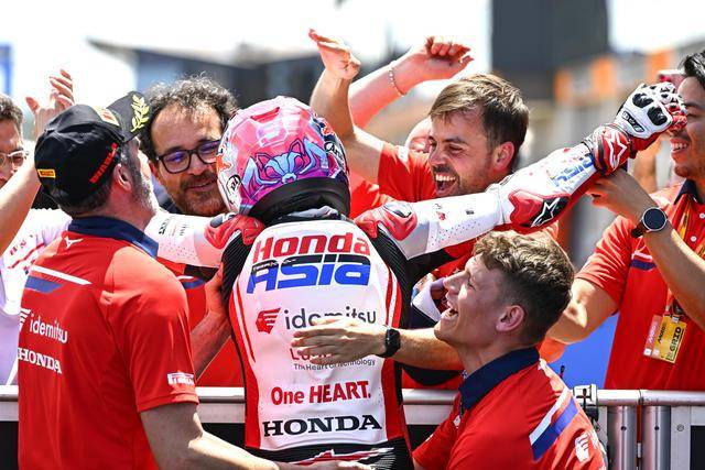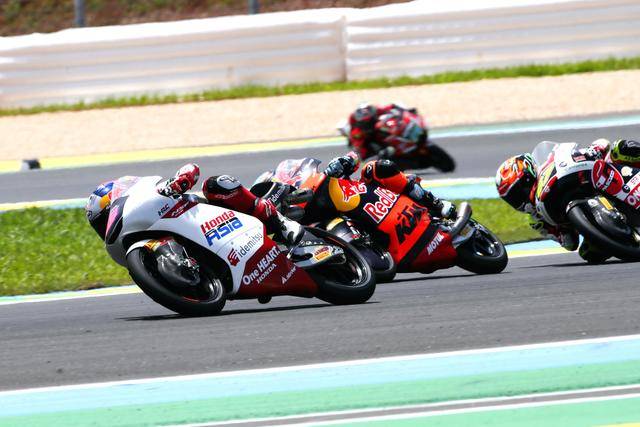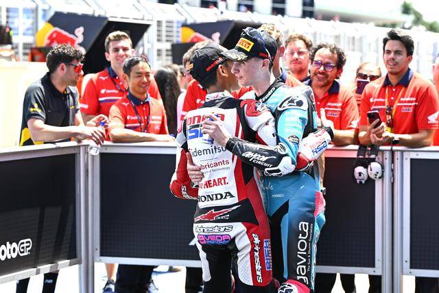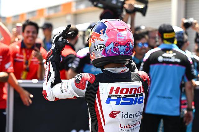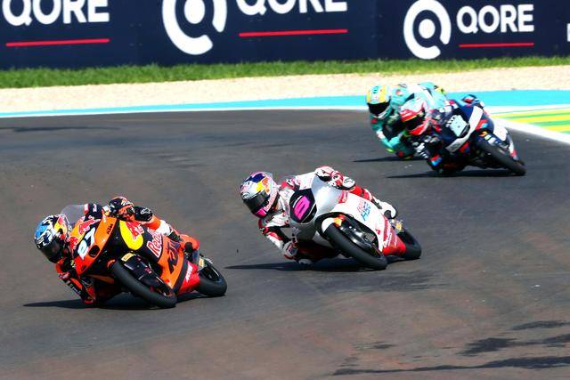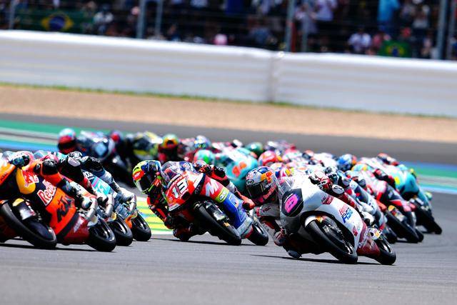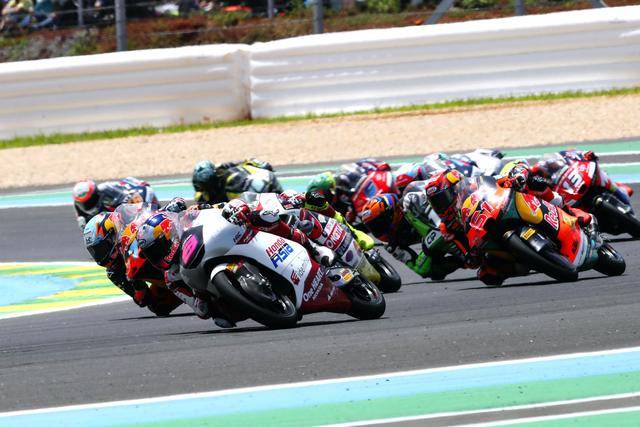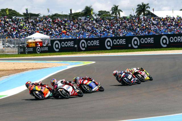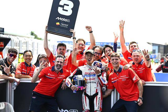 在競(jìng)爭(zhēng)尤為激烈的 Moto3 級(jí)別,駕駛 9 號(hào)車的印尼車手普拉塔馬(Veda Pratama/原名全稱 Veda Ega Pratama),在 Q2 就拿到了第四、展現(xiàn)出強(qiáng)大的競(jìng)爭(zhēng)力;第二次起跑、賽程被縮減到只剩 5 圈的正賽里,普拉塔馬與另外的幾位車手、一起上演了精彩的肉搏戰(zhàn),他最終奪得了季軍,在 GP 世界錦標(biāo)賽里、僅僅是第二場(chǎng)的亮相,就歷史性地拿到了在 GP 職業(yè)生涯的首次頒獎(jiǎng)臺(tái)。