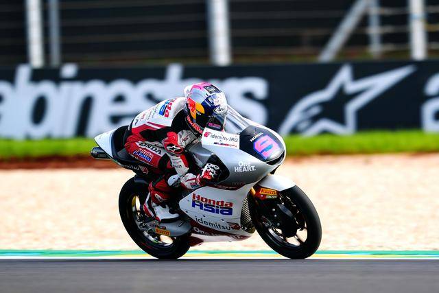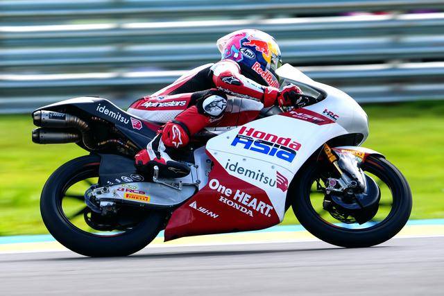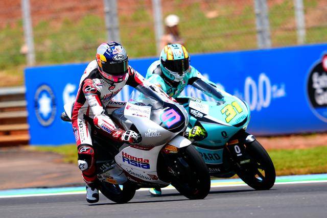 到 2024 賽季,尚未滿 16 歲的普拉塔馬進(jìn)入 ARRC 的 SS600 級(jí)別,并奪得了年度第六名;同年參加的紅牛MotoGP 新秀杯(Red BullMotoGP Rookies Cup)、他以年度第八名結(jié)束了走向世界大賽的第一程;到了去年,他同時(shí)參加紅牛 MotoGP 新秀杯和 FIM 青少年世界錦標(biāo)賽(FIM JuniorGP World Championship),分別獲得了年度總亞軍、年度第十名,順利完成了進(jìn)入 GP 之前的最后 “ 大考 ”,于今年首次亮相 Moto3。實(shí)際上、在泰國(guó)的首次登場(chǎng),普拉塔馬就已經(jīng)與頒獎(jiǎng)臺(tái)擦身而過(guò) —— 他奪得了第五名,與第三名的距離只有大約 0.2 秒。
