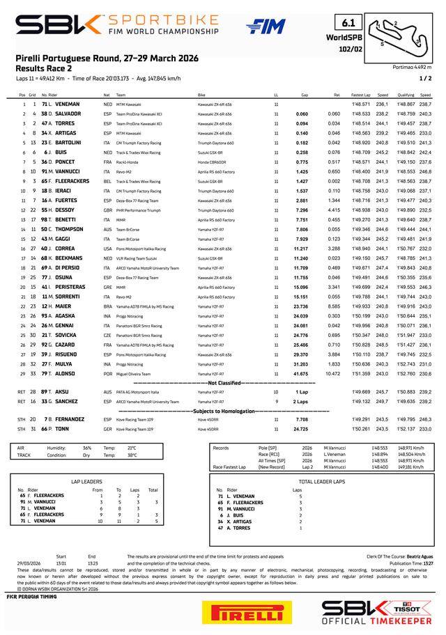 FIM WorldSBK 超級(jí)跑車世界錦標(biāo)賽(FIM Superbike World Championship)2026 賽季第二站的比賽,三月 27 - 29 日在葡萄牙波蒂芒(Portimao。該賽道也稱之為 Algarve 阿爾加維 )賽車場(chǎng)舉行。