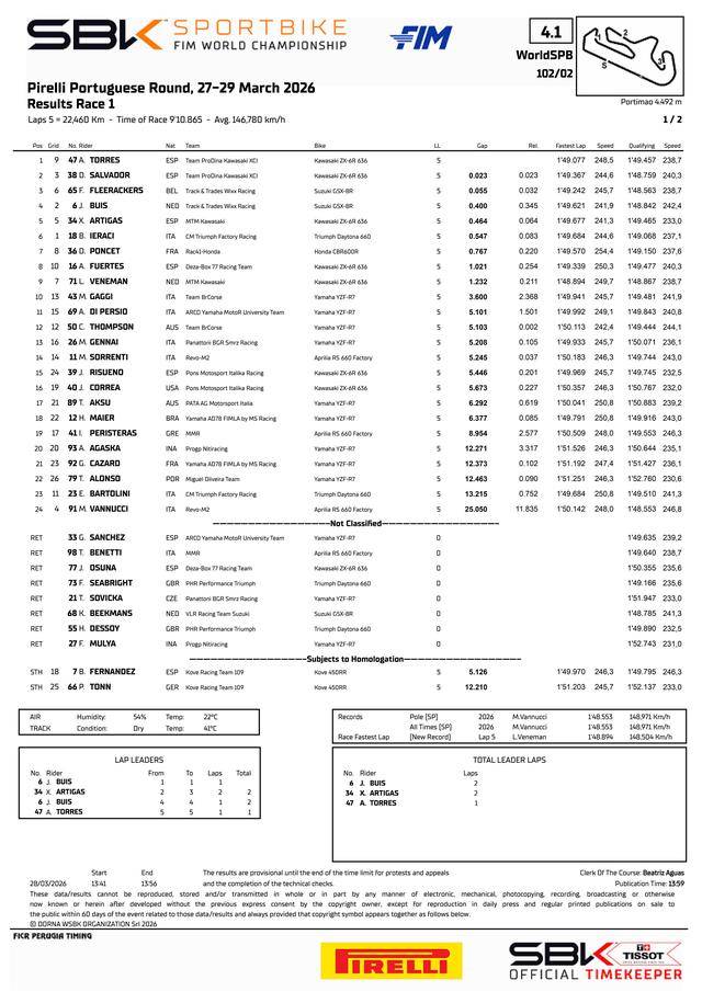 2026 WorldSBK 葡萄牙站:WorldSPB 運(yùn)動(dòng)車型級(jí)別的首場(chǎng)角逐