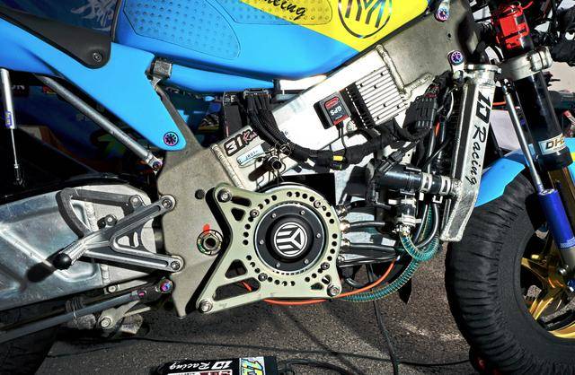歷時(shí)超過(guò)一年的設(shè)計(jì)、開(kāi)發(fā)、加工和測(cè)試之后,由 10Racing “ 10 賽車 ” 俱樂(lè)部負(fù)責(zé)人兼車手李俊親手打造的 “ 油改電 ”(燃油活塞式動(dòng)力單元改為電動(dòng))電動(dòng)賽車,去年開(kāi)始頻繁出現(xiàn)在兩廣地區(qū)的電動(dòng)兩輪賽事中。而 10 是李俊在各項(xiàng)比賽里的 “ 傳統(tǒng) ” 賽車號(hào)碼。