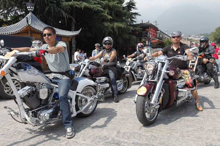 哈雷摩托車隊“酷”現(xiàn)大理國際影會