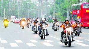 隨著一聲口令,40多輛哈雷摩托發(fā)動(dòng)機(jī)的轟鳴聲響徹大街。從南濱路哈雷店到龍湖酈江再去美堤雅城,最后從麗笙世嘉返回專賣店。