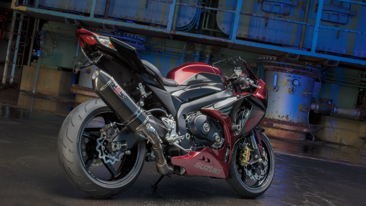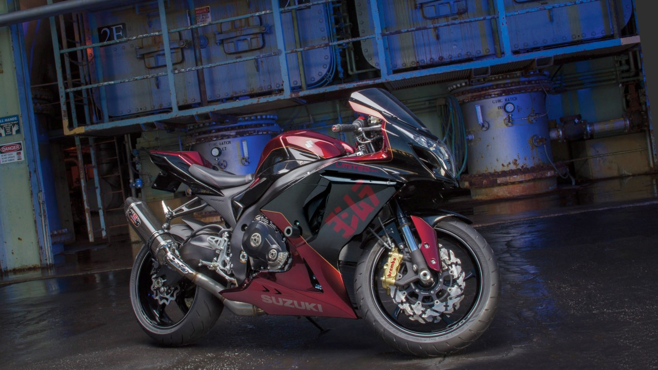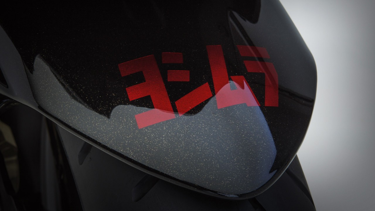 這款限量的2013' GSX-R,采用了紅色、黑色襯金色條的圖案,符合街道行走法規(guī)(美國(guó)當(dāng)?shù)氐腅PA和CARB車輛登記標(biāo)準(zhǔn))的吉村R77碳纖維排汽系統(tǒng)為標(biāo)配,此外,還使用了大量航空鋁材以CNC加工而成的零件,車身也裝了一個(gè)有限量版編號(hào)等信息的特制銘牌。