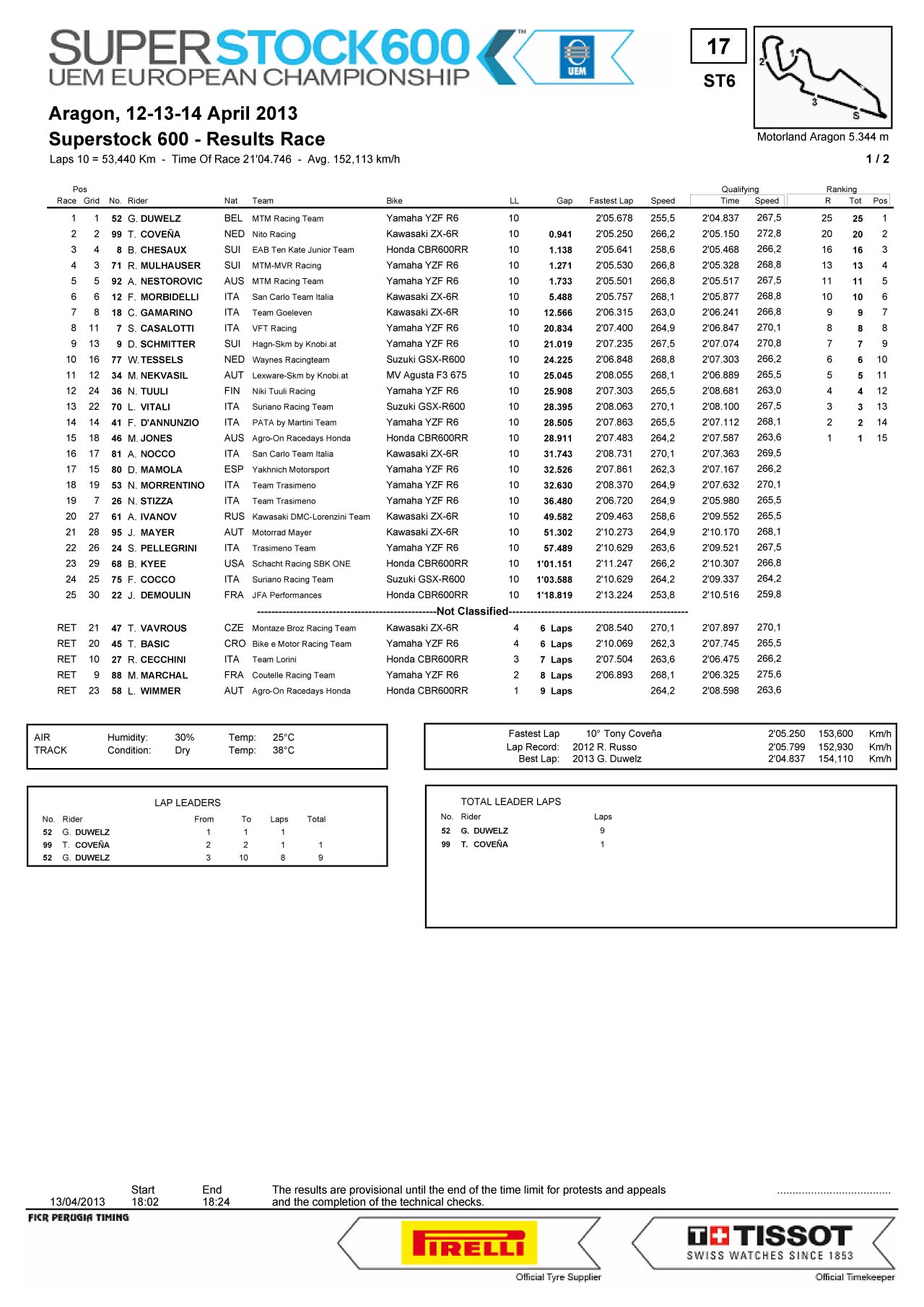 核心提示:SBK 級別第一節(jié)賽事成績SBK 級別第二節(jié)賽事成績WSS 級別賽事成績表ST1000 級別賽事成績表ST600 級別賽事成績表