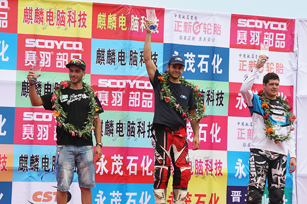2013年“中煤平朔”杯全國摩托車越野錦標賽(平魯站)暨國際邀請賽今天在山西平魯賽車場精彩落幕,法國車手高德利獲得國際組冠軍,而中國車手許健豪獲得進口250CC A組冠軍。