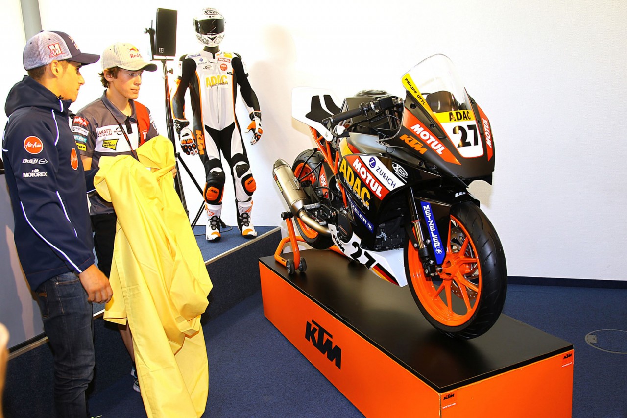 同時,為了推廣這款新的RC390、為其戴上實戰(zhàn)的光環(huán),廠方還將同時為明年的德國ADAC 青年杯提供這款新車,供車手使用。ADAC,德國汽車協(xié)會,是德語Allegemeiner Deutsche Automobil Club 的簡稱,F(xiàn)IA 的成員之一,德國本土的大部分汽車、摩托車比賽均由其主導,而負責為摩托車運動提供更多新星的ADAC青年杯,則起源于1993年。
