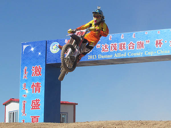 2013年“達茂聯(lián)合旗”杯全國摩托車越野錦標賽開賽,這是越野全錦賽今年的第二站比賽。云南巨人地產(chǎn)車隊的許健豪輕松獲得進口250CC A組第一。