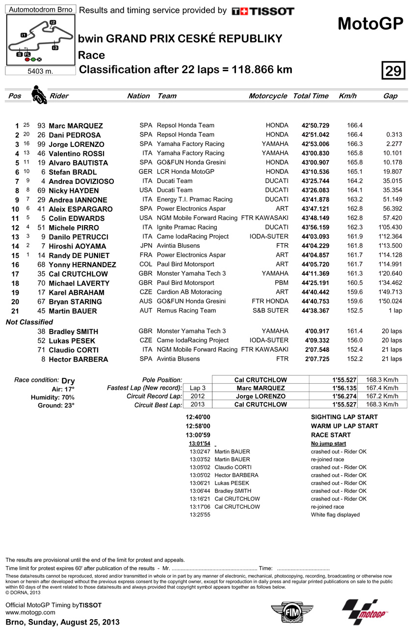 2013' MotoGP捷克站-正賽成績(jī)