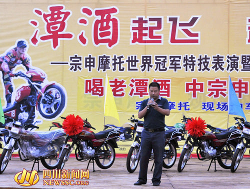 核心提示:9月22日,四川仙潭集團(tuán)在古藺新體育中心廣場舉行了潭酒起飛 超越夢想宗申摩托特技表演即中獎摩托發(fā)放儀式。仙潭集團(tuán)董事長劉朝華