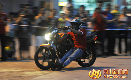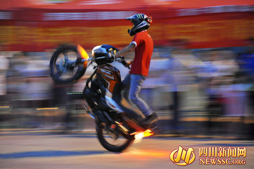 激情“斗牛士”在古藺游行結(jié)束,夜幕降臨,宗申摩托車隊(duì)的特技車手登場炫技。在特技表演中,兩位車手如同激情的“斗牛士”,身下的摩托車猶如狂怒的瘋牛,橫沖直撞,一會“昂身揚(yáng)蹄”,一會“急轉(zhuǎn)側(cè)身”,似要把那瀟灑干練的“騎士”甩下。但車身上的“騎士”卻穩(wěn)若泰山,偶爾又若飄逸“飛燕”站在車身之上,有時(shí)還藏身在車身一側(cè),玩著“隱身”的特技?,F(xiàn)場觀眾掌聲雷動,此起彼伏,贊賞的唿哨聲不時(shí)響起。這一夜,古藺市民親身見證了世界上最炫的車技,見證了世界上最優(yōu)雅、最神奇、最激情的騎車方式。據(jù)悉,前來為中獎摩托發(fā)放儀式助興表演的宗申摩托特技車手,曾多次代表我國參加世界摩托車錦標(biāo)賽,并榮獲多項(xiàng)優(yōu)異成績,成立于1999年的宗申摩托車隊(duì)也是我國最早組建的摩托車隊(duì)。