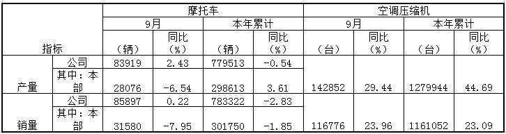 核心提示:建設(shè)公司2013年9月份生產(chǎn)、銷售摩托車及空調(diào)壓縮機(jī)數(shù)據(jù)如下: