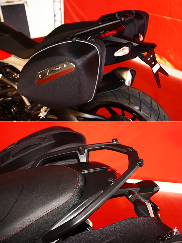 長途騎乘的便利,同時反應(yīng)在原廠提供的左右輕量化快拆式側(cè)行李箱,容積各為25L,若還不夠,后把手也預(yù)留加掛后箱機(jī)能,原廠后箱容積則達(dá)31L,如此一來,可讓Hyperstrada的置物容積高達(dá)81L之多。座墊造型也經(jīng)過修改,加寬且調(diào)整騎士與乘客的高度差;此外,休旅面向的配備還包含前擋風(fēng)罩、中央置車架、2組12V輸出電源與加大至16L的油箱等,更利于車主長途騎乘。