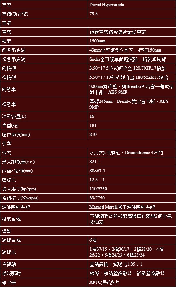 全新改款Hypermotard車型問世之際,也以其為基礎(chǔ)加諸Hyperstrada車款,經(jīng)臺灣總代理碩文努力,全新年式Hypermotard與Hyperstrada選擇于昨日在臺發(fā)表。