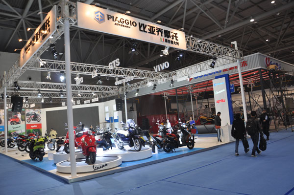 2013年10月17日,比亞喬合資公司攜旗下2014新款機(jī)車在內(nèi)的二十余款車型驚艷亮相第十二屆中國國際摩托車博覽會。精彩紛呈、品味非凡的眾多新產(chǎn)品,散發(fā)著濃濃意大利時尚典雅生活氣息,使比亞喬合資公司成為本次摩博會中最值得關(guān)注的展臺之一。