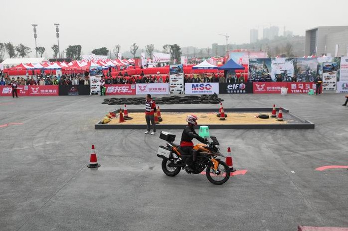 17日下午,“賽科龍RX3探險真人秀”活動在本屆摩博會舉辦地重慶國際博覽中心廣場正式拉開帷幕。此次活動在一塊全封閉場地內(nèi)進(jìn)行,共設(shè)置有十道關(guān)卡,參與選手要從穿戴安全裝備開始,依次挑戰(zhàn)下坡、獨木橋、“炮彈坑”、形象門、載物、黃豆地、繞樁、砸金蛋和上坡這10個環(huán)節(jié)。關(guān)卡的設(shè)置不僅要求選手有良好的車感,對于車輛自身的操控性和穩(wěn)定性也是一種考驗。