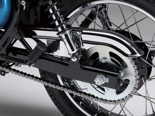 川崎聲稱發(fā)動機峰值功率為17.4hp@7500rpm,扭矩為13.3ft-lb@5500rpm。簡單的發(fā)動機設計被排氣管玩具槍式的設計彌補,為車子增加了復古感覺。
