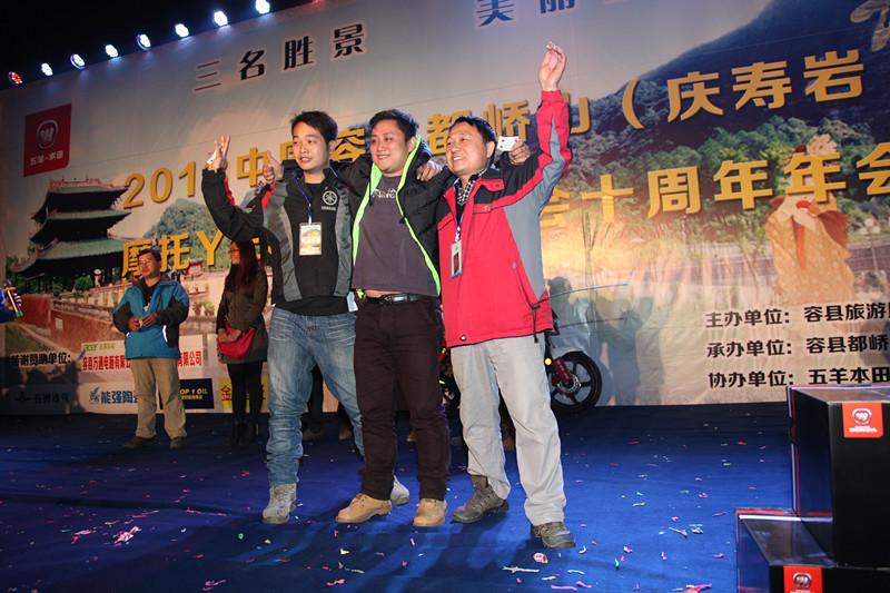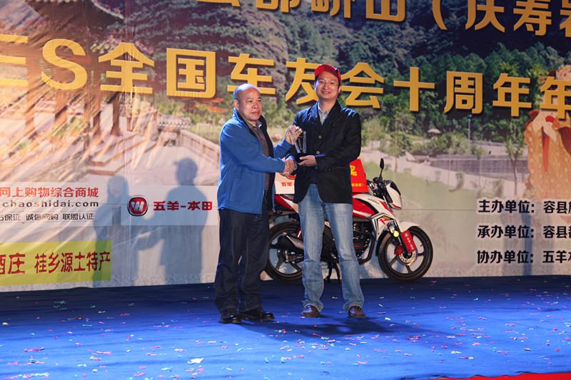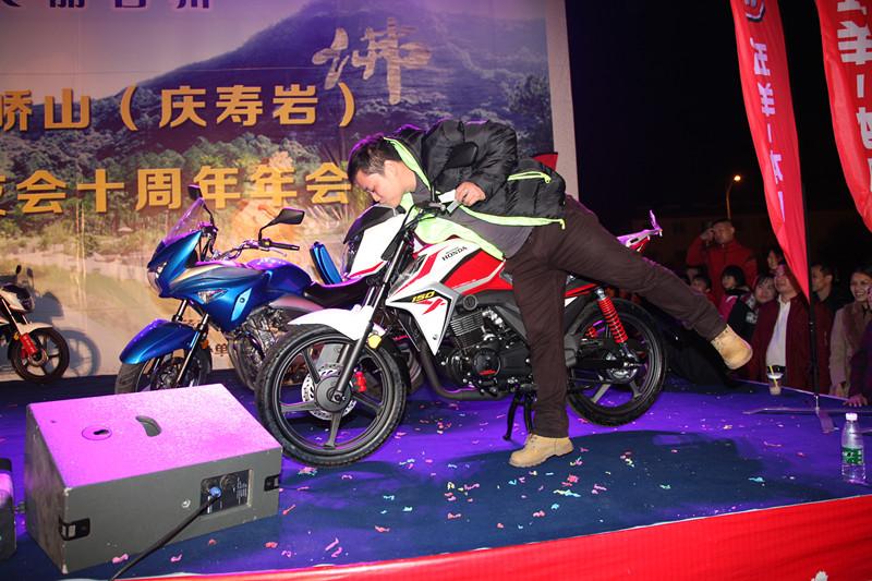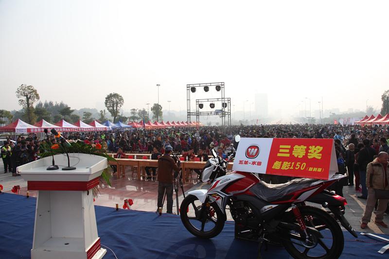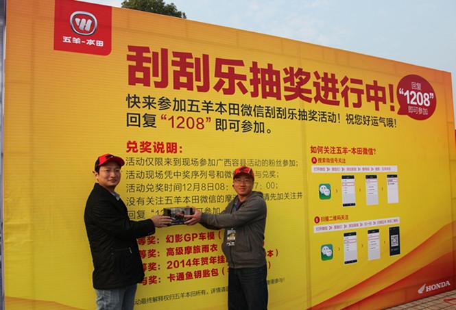 當(dāng)天晚會將本次活動推向了高潮,彪影150(X-150)獲得《摩托車趨勢》評選的年度車型大獎,五羊-本田公司營銷服務(wù)部廣西銷售科科長楊永發(fā)代表公司上臺領(lǐng)獎。在激動人心的抽獎環(huán)節(jié),五羊-本田提供了配置不同的3輛彪影150(X-150)作為晚會的現(xiàn)場一、二、三等獎,3位來自廣西柳州、容縣的幸運(yùn)的獲獎摩友在眾人的羨慕中登臺領(lǐng)獎、合影,并十分激動地感謝五羊-本田的驚喜大禮,表示不虛此行,收獲頗豐。