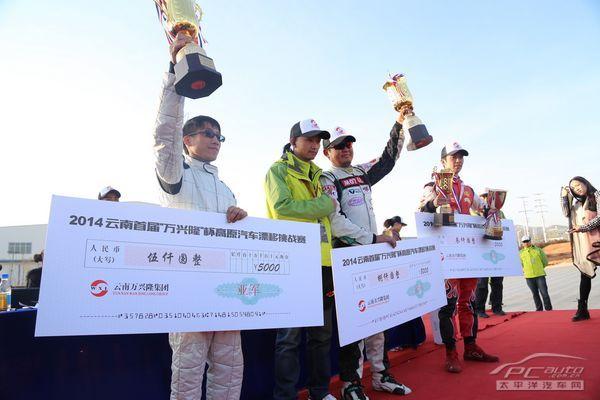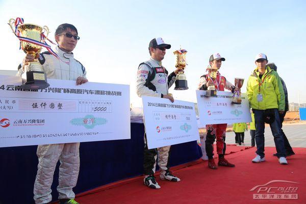 經(jīng)過(guò)激烈的比拼,來(lái)自成都CDK車隊(duì)的王昌璽榮獲汽車漂移挑戰(zhàn)賽冠軍,非凡飄移車隊(duì)的梁炯輝獲亞軍,云南萬(wàn)興隆車隊(duì)的新秀徐昌偉首次參加全國(guó)正式大賽就一鳴驚人,奪得季軍。