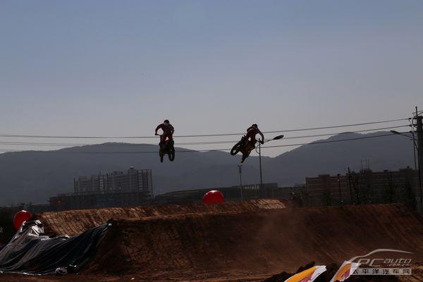 比賽結(jié)束會(huì)后,賽事壓軸大戲――摩托車飛躍表演中,來(lái)自云南巨人地產(chǎn)車隊(duì)的名將師雨萌駕車縱身飛躍8輛汽車的壯舉,更令全場(chǎng)氣氛達(dá)到了沸點(diǎn)。