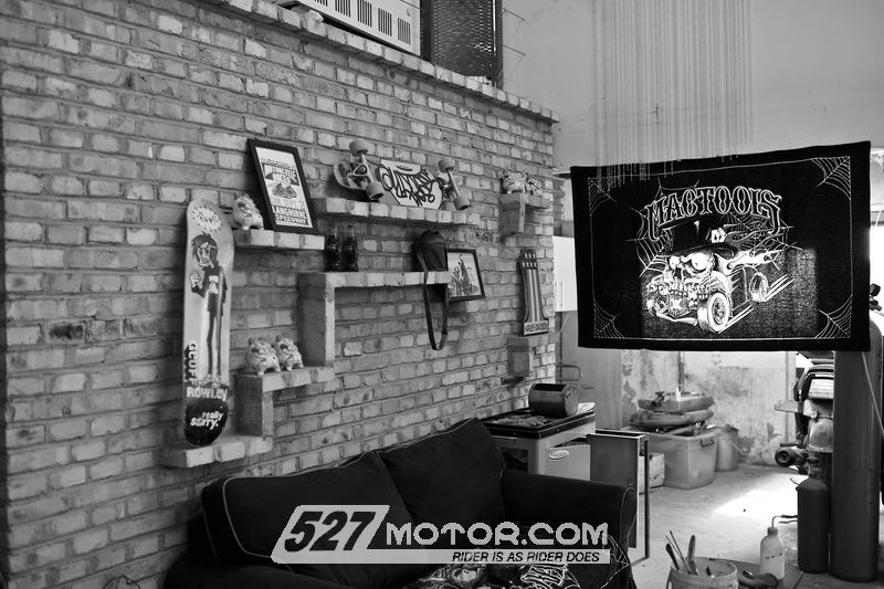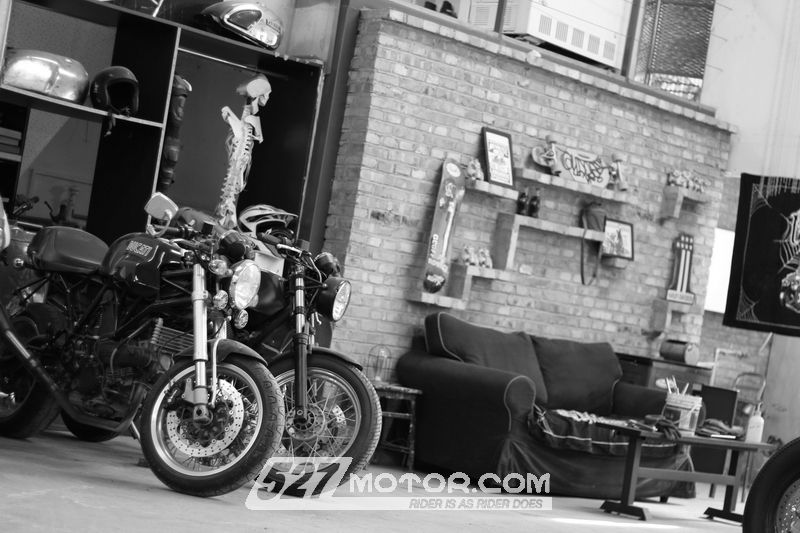 這次所前往的ManDrill工作室實質(zhì)上以改裝、維修為主旨的一個“私家”地點,位于京城城郊的一處藝術(shù)區(qū)內(nèi),近300平的超大空間足以排下騎士們的那些寶貝愛車。